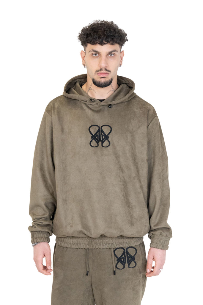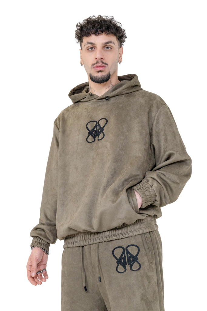 The Suede Khaki Hoodie is the perfect blend of comfort, durability, and versatility. Crafted from the finest vegan suede, it offers a luxuriously soft texture that surpasses natural suede while being more durable and comfortable. Ideal for both activewear and relaxed lounge days, this hoodie effortlessly combines style and functionality.